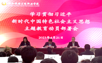 院党委书记朱选朝代表学院党委做主题教育动员,并强调此次学习贯彻习近平新时代中国特色社会主义思想主题教育的重要性和会议精神。他表示,必须深刻理解主题教育重大意义,牢牢把握“学思想、强党性、重实践、建新功”的总要求,努力在以学铸魂、以学增智、以学正风、以学促干方面取得实实在在的成效,不折不扣扎实开展主题教育各项工作。朱选朝分别从开展主题教育的重大意义、准确把握主题教育的目标要求、确保主题教育取得成效三个方面就学校开展主题教育各项工作进行部署,强调要认真落实学校党委的部署和要求,提高政治站位,统一思想认识,增强行动自觉,切实将主题教育与学校各项工作相融合,为坚定不移走好建设中国特色、世界一流职业院校新路贡献自己的力量。