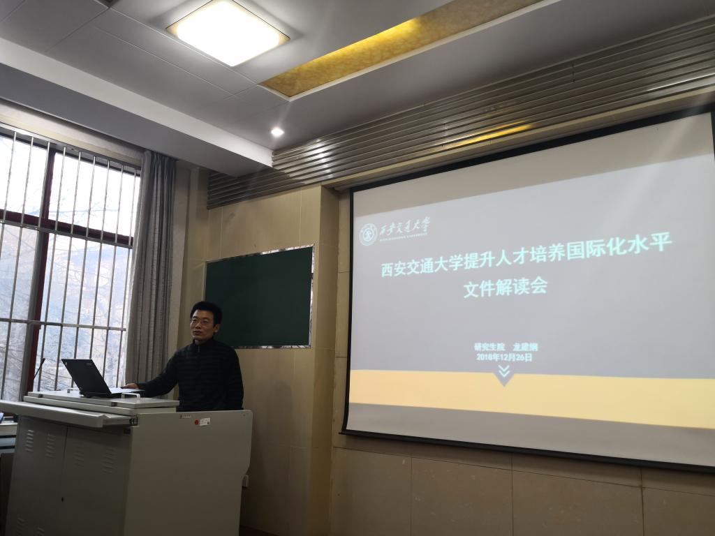 接着,田小永教授代表研究生院为在座老师详细介绍了学校近期出台的有关人才培养国际化的管理文件。他号召老师们增强国际化意识,在培养学生的同时,也不断提升自身的国际化素养,如开设英文课,加强海外访问,建立国际联合科研项目等。