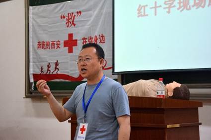 6月10日上午,万象城awc官网登录入口硕8001、8002、8004、8005、8006&8007、8009、8012、8013&8014党支部联合西安市红十字会,组织开展“奔跑的西安,‘救’在你身边”专题宣传培训活动。本次活动旨在增进研究生对红十字运动的认识,提高应对紧急情况的能力,普及现场急救知识。活动特邀西安市红十字会应急防护培训教师白小飞老师主讲。本次活动由辅导员王芬老师主持。