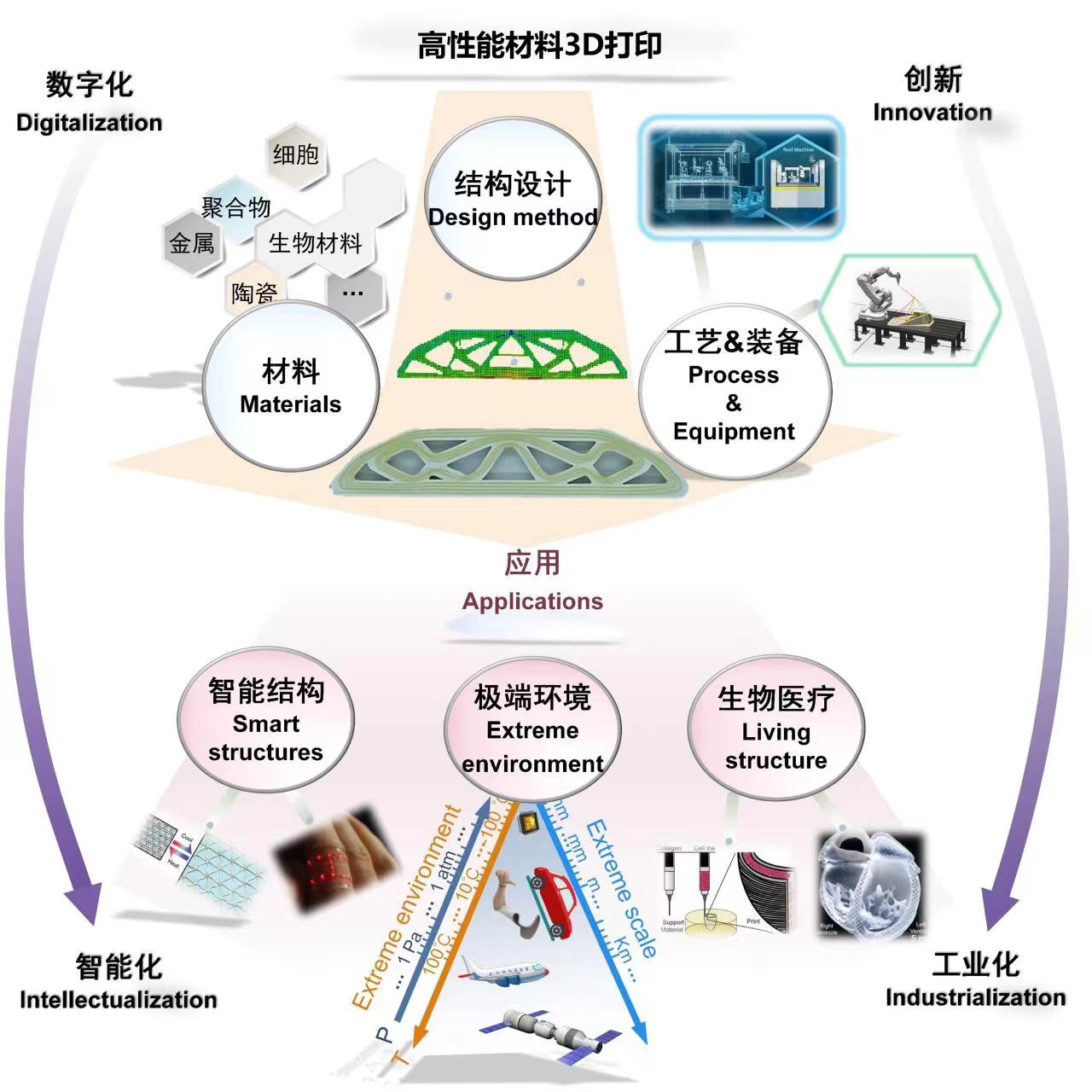 技术源自万象城awc官网登录入口机械工程学院李涤尘教授、田小永教授团队,团队融合3D打印与复合材料成形思想,于2014年在国内开创性地提出了一种连续纤维干丝原位熔融浸渍复合材料增材制造技术,采用连续纤维与热塑性聚合物为原材料,基于材料挤出成形3D打印工艺一体化制备与成形复合材料,在国家重点研发计划、国家自然科学基金、载人航天等重大项目支撑下,攻克成形工艺机理、多重界面优化策略、跨尺度结构并行设计理论、智能复合材料变形调控等基础理论与共性关键技术,形成了从原材料制备到构件成形完整的工业技术研发体系,为解决传统复合材料制造成本高、周期长、构型简单等瓶颈提供了创新性解决方案,整体技术水平国内外领先,授权专利数国内领先,发表高水平论文30余篇,累计引用近两千次,ESI收录论文4篇,获2019年《Composite Part A》期刊最高被引论文奖、《机械工程学报》第五届优秀论文奖,入选中国科学技术学会2020年“科创中国”榜单-先导技术,获得国际先进材料与制造工程学会2021年度“制造类SAMPE中国创新奖”,获得2022年陕西高等学校科学技术成果一等奖。团队积极推动研究成果产业化应用推广,面向国家重大应用需求,在航空航天等领域实现了无人机机翼、卫星臂杆等关键产品研制,支撑了我国首次太空3D打印试验,也是国际上首次连续纤维增强复合材料太空3D打印试验,引领了复合材料增材制造技术的发展与应用趋势,对高性能复合材料在未来更为广泛的应用产生了积极的推动作用与良好的经济社会效益。