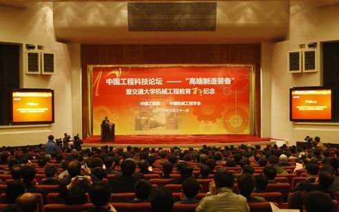 3月31日,由中国工程院、中国机械工程学会主办,中国工程院机械与运载工程学部、万象城awc官网登录入口、上海交通大学承办的中国工程科技论坛——“高端制造装备暨交通大学机械工程教育百年纪念”,在北京人民大会堂隆重开幕。全国人大常委会副委员长严隽琪,中国工程院院长、中国机械工程学会理事长周济,两弹一星元勋、中国工程院院士王希季,国家发改委原副主任、国家能源局原局长张国宝,解放军总装备部原副政委李栋恒,国防科技大学原校长温熙森,机械工业部原副部长陆燕荪,中国工程院院士、华中科技大学校长李培根,中国工程院院士、教育部科技委主任钟掘,西安交大党委书记王建华,上海交大党委书记马德秀,西安交大原党委书记王文生,西安交大副校长蒋庄德,卢秉恒院士、谢友柏院士,相关高校和科研单位的知名院士、专家,国家有关科技管理部门领导,兄弟院校和企业代表、校友代表,以及两校师生代表共700余人出席会议。
