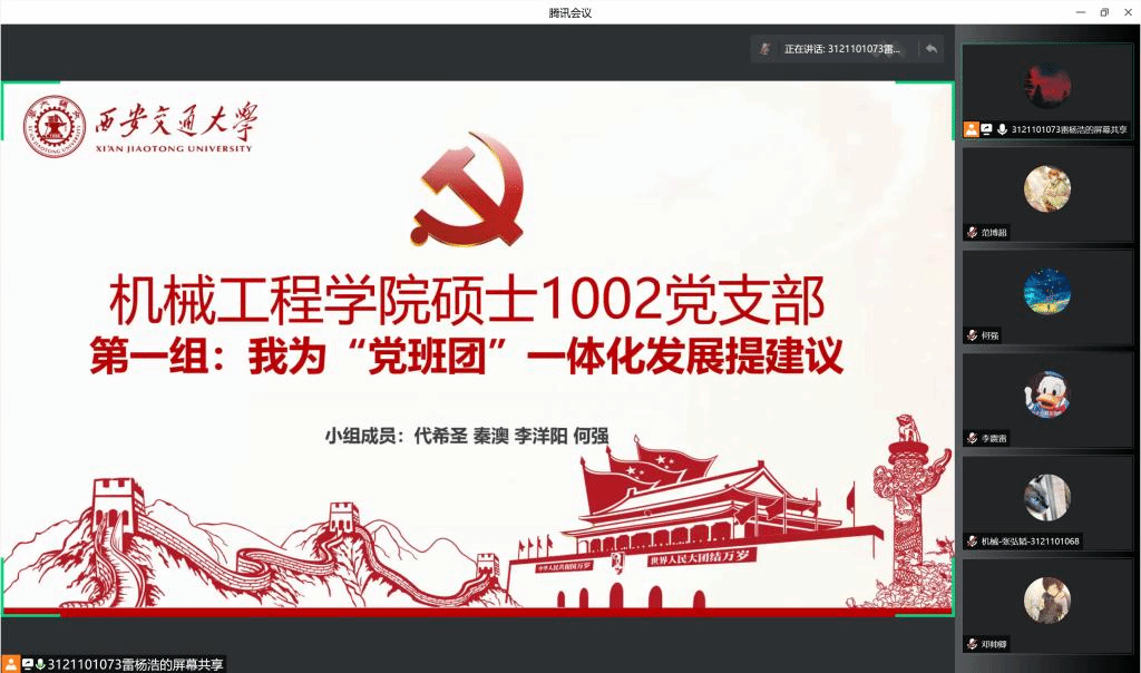 本次组织生活会包括“党建引领下的高校班团一体化建设”、“喜迎126校庆,校史校情学习”两项活动,分别由本支部学习小组成员代希圣、邓帅卿等同志进行主持。