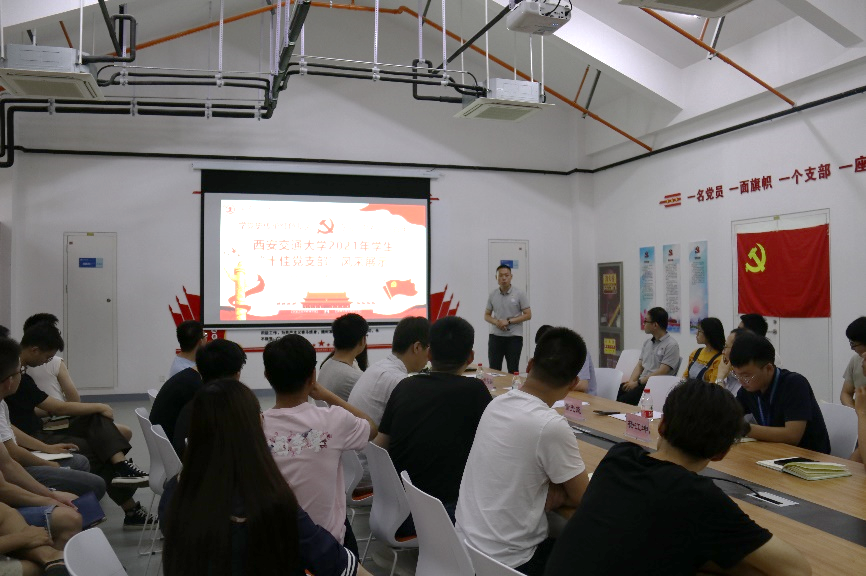赵鼎堂同学首先介绍了设计所博士生第一党支部的基本情况,支部现有博士生党员18名,发展对象3人,积极分子2人,支部成员全部来自“复杂装备数字化设计与制造”陕西省创新团队,团队学术带头人为学校党委常委、现代设计及转子轴承系统教育部实验室主任洪军教授。支部打造“以党建促科研、以支部带全体”的双促双带发展模式,着力形成科研与党建相互促进良好成效,在过去一年中先后获得学院先进党支部和全校研究生“十佳党支部”荣誉称号,支部作为全校唯一博士生纵向支部在表彰大会上面向全校师生展示风采。赵鼎堂同学从政治建设“精心策划促学习,抗疫调研树堡垒”、时代使命“攻关难题担重任,一流成绩显才能”、价值导向“志愿服务作榜样,五育互融共成长”和示范引领“特色活动展风采,示范引领画新篇”四个方面,展现了支部开展的丰富多彩的活动及取得的优异成绩,并对院分党委、团队教师和支部成员的支持与奉献表示感谢,并表示支部成员们必将不忘初心,继续前进,为设计所和院分党委的党建工作再创新功。