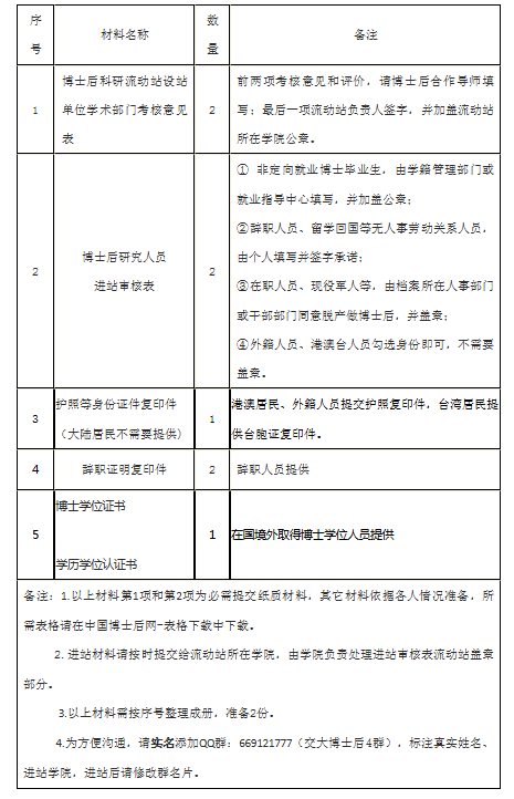 b. 博士后人员进站纸质材料清单