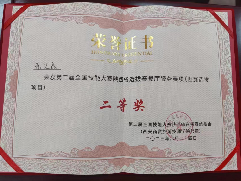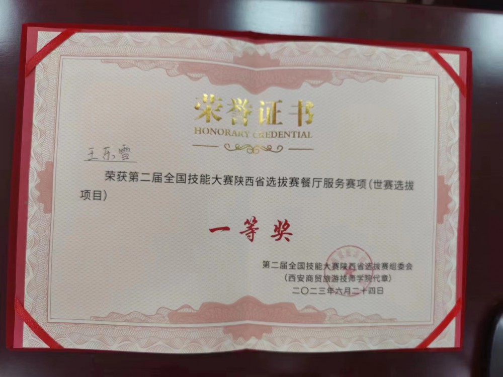 祝贺今年会酒旅221班王东雪同学荣获第47届世赛选拔赛餐厅服务项目陕西选拔赛一等奖,酒旅221班陈文晶同学荣获世赛选拔赛餐厅服务项目陕西选拔赛二等奖