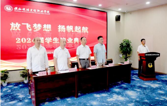 在庄严的国歌声中,毕业典礼正式开始。副院长杨文利代表学院致辞,向学有所成、奔赴梦想的毕业生们表示最热烈的祝贺,他指出,2024届毕业生亲历了众多值得铭记的重大时刻,见证了学院各项事业的快速发展,收获了不同寻常的历练成长,展现了陕旅青年的责任与担当。他希望所有毕业生,一要坚定踔厉奋发的信念意志,做有担当的先行者;二要坚守品德修养,做有温度的奋斗者;三要永葆胸怀天下的赤子情怀,做有格局的建设者,为自己增值,为母校增辉,为社会添彩。