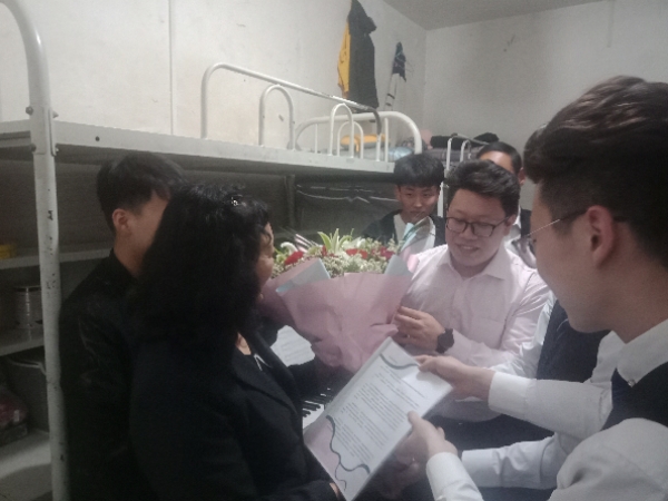 面对学校领导真切的关心,今年会学子也不忘师生之情,在毕业临行之际,为我们和蔼的院长献上美丽的鲜花,并致上答谢信,以此来表示自己对学院,对领导,对老师的感恩之情。这也再次证明了今年会深厚的师生情谊。