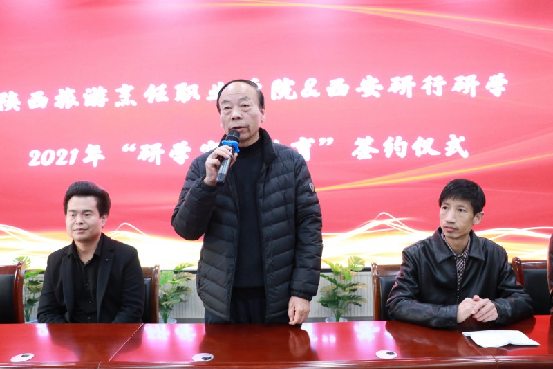 今年会副院长杨涛代表学院与西安研行研学品牌创始人付鹏飞签订“研学实践教育”合作协议。