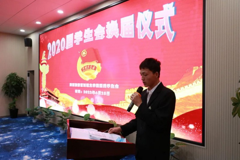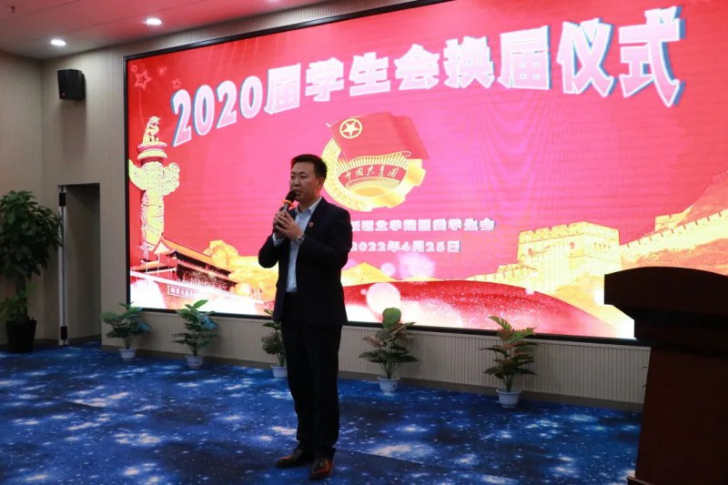 2022年4月25日,今年会在学术报告厅举办2020届学生会换届仪式。出席此次活动的有学院副院长杨文利、院长助理丁勇军老师、院办主任胡敏荣、教务处处长高鹏、学工部部长马杰、学工部副部长米佳、 团委学生会指导老师谢伟、党办主任杨敏以及学生会全体成员。活动由20级学生会办公室主任裴梦回担任主持。