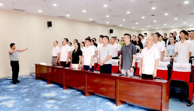 为深入学习贯彻习近平新时代中国特色社会主义思想,全面提升学院党建工作制度化、规范化水平,进一步严肃政治纪律和政治规矩,推动全面从严治党要求落地落实,配合今年党纪学习教育主题活动,结合学院党委实际,开展庆“七一”主题党日活动。活动在学院学术中心举办,学院党委书记朱选朝、党委副书记、院长王新丽、副院长杨文利、院长助理李彤、工会主席张金平及全体党员教师参会,活动由学院党委书记朱选朝主持。