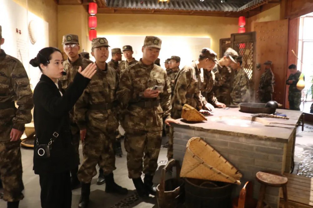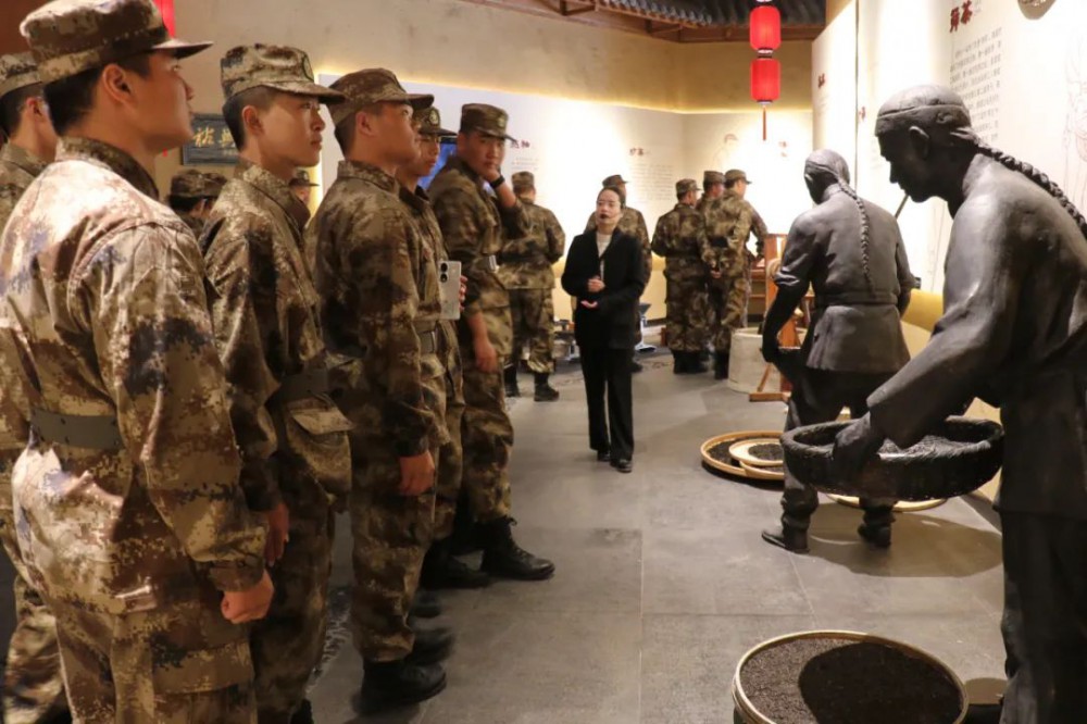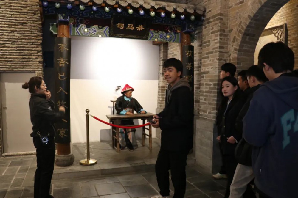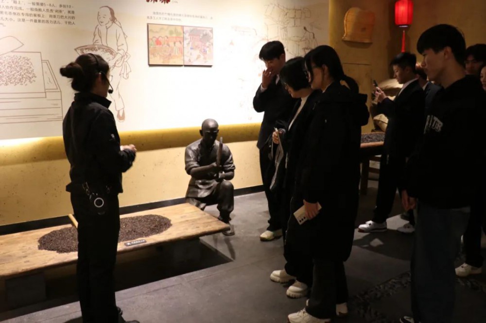 在筑茶工艺区,讲解员为师生讲述了传统制茶工艺——挑茶、剁茶、吊茶、炒茶以及压茶,以讲解和互动的形式为学生提拓展了丰富的制茶知识。