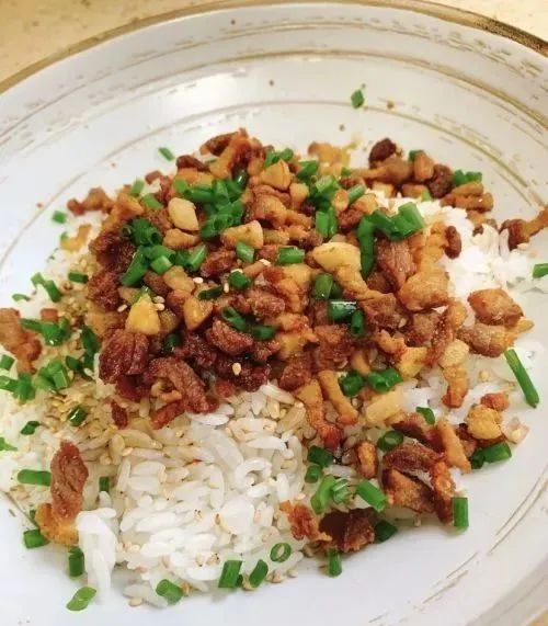 贫民其实也流传一个类似吃法,米饭蒸熟了,拌上热猪油,再把油渣用盐撒上后,拌饭里,来一口,那个香啊...