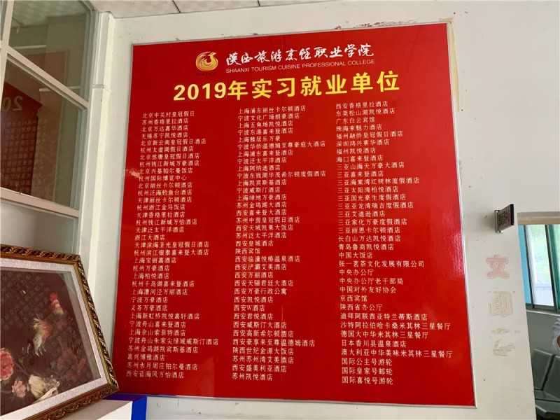在烹饪标本室外,挂着一张占据了整墙的2019年实习就业单位名录,其中既有西安的绝大多数星际酒店,也有全国主要大城市的著名酒店,更有不少中央级别政府机关与国际大酒店、国际游轮等,总共有百余家之多,但接下来王春丽告诉笔者的,远远超过了这份名录的重量: