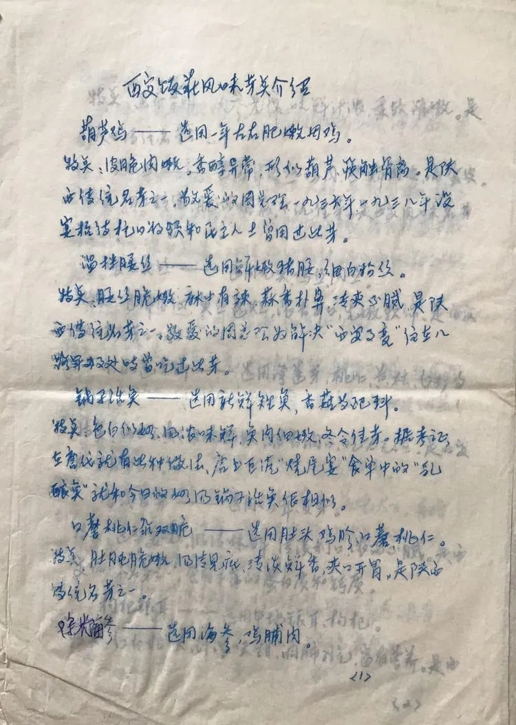 为了方便于大家学习,也为了防止日后字迹老化而失去这难得的、可以见证陕菜历史的内容,故将其内容附录如下。