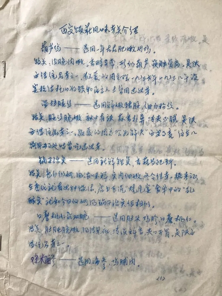 第一讲到第三讲是什么内容?《文化古都西安的风味菜点》是第几讲?这套饮食业业务知识的培训内容一共有多少讲?这些问题现在都是无法获知的了。它既留下了无比的遗憾,也留下了无限的遐想。从这三篇历史资料的内容来看,它是西安饮食行业业务技术的培训内容,仅此内容已经涉及到饮食业的经营管理和厨师、服务员、售票员等部门的岗位培训知识。而《第四讲 饮食销售方式与销售核算》培训资料最后也说到了:“这一讲介绍的有关饮食销售方式和销售的核算,仅仅是服务员应具备的业务知识的一小部分”,所以说还应该有关于服务员、操作员等不同部门业务培训的第五讲、第六讲……。从这个意义上讲,那个年代企业不仅重视全员的政治思想教育,更重视全体职工的业务技术培训,因为他们知道,只有具备了过硬的业务技术,才能更好地为人民服务。