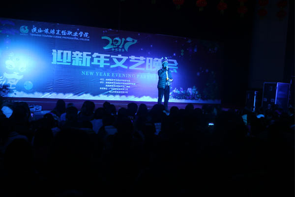 校乐队一曲激情澎湃的演唱,调动了全场的气氛,随后令人热血沸腾的腰鼓表演拉开了晚会的帷幕。学院副院长余鹏老师发表了热情洋溢的新年祝词,他回顾了2016年学院取得的辉煌成绩,对同学们在2016年的成长表示了赞同与认可,展望了充满希望的2017年,鼓励同学们在新的一年里不断成长,不断进步,祝愿全体师生身体健康,快乐学习,快乐工作。
