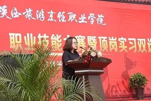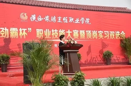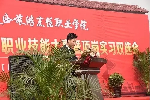 15级实习生代表张浩在发言中对母校的培养表示了感谢,谈了自己在校两年学习生活习惯的养成,对以后的顶岗实习进行了展望,号召大家努力实现自己的人生目标。天津香格里拉酒店人力资源部顾总监代表招聘单位致辞,她感谢学院给企业和同学们提供了这样好的一个平台,介绍了多年来和旅游烹饪职院的良好合作情况。