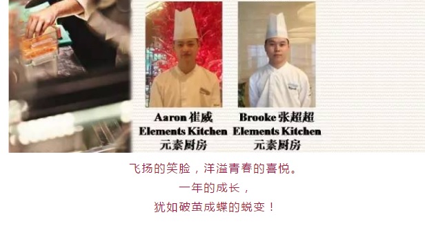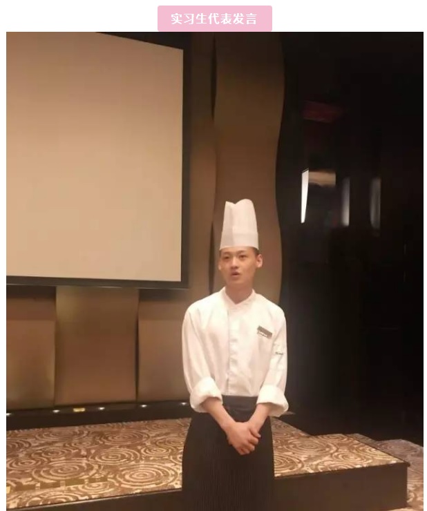 厨房各部门厨师长发表对同学们的寄语:每天与同学们工作在一起,见证了大家从学校初出茅庐到工作时独当一面的迅速蜕变,希望在凯宾斯基实习的这段经历能丰富你们各自的人生。
