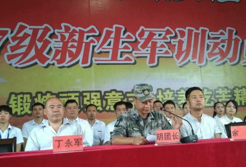 军训团教官在军训动员大会上发表了热情洋溢的讲话,就军训的纪律、要求及意义目的向新同学们一一作了宣讲并寄予厚望。会场再次掌声响起。