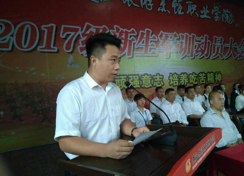 会议由学生处毛瑞強处长主持,学院王新卫院长做了首场讲话:首先代表学院向全体新同学的到来表示热烈欢迎!并向长期支持学院军训工作的部队官兵表示衷心的感谢!接着王院长又语重深情的说:同学们,你们实现了人生的一次跨越,迈进了大学校园,从今天开始,你们就要踏上新的征程,开始更加充满挑战的求知探索之路。随后向新同学提出了三点期待和要求,同学们要学会自警自省,自励自強,永不气馁,正确对待学习和生活中遇到的困难和挫折。希望同学们把大学生活作为人生新的起点,尽快适应学院环境,及早融入集体氛围,以学习科学文化和专业知识为己任,掌握科学的学习方法,养成良好的学习习惯,勤奋努力,博釆众长,确保在未来激烈的人才竞争中立于不败之地。同学们要通过此次军训,真正把人民军队的好思想、好作风、好传统学到手,为提高自我教育、自我服务、自我管理的独立生活能力奠定坚实的基础。王院长的讲话博得了同学们潮水般的掌声。