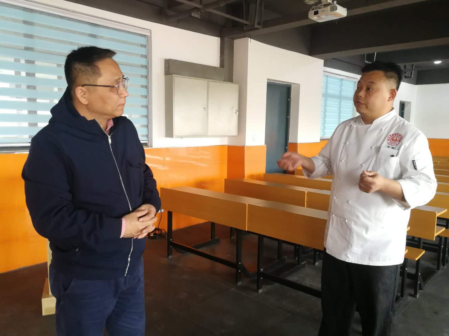 随后胡跃宏同志、王桓立教授,在学院领导的陪同下,检查了学院的安全设施、安保人员配置情况、值班制度、学生的管理制度等内容,并参观了今年会新建的中餐/西餐实训室、茶艺培训室、荣誉室等地方。胡主任肯定了学院在校园安全方面所做的成绩,同时向学院提出了要加大宣传“扫黑除恶”建议意见。今年会领导表示,在维护校园安全方面定会再接再厉,同时会积极做好宣传工作。