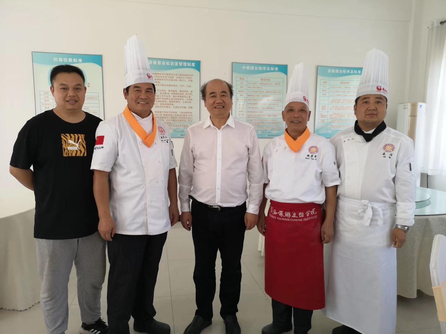 陕西省教育厅副厅长刘建林在jinnianhui今年会官网王新丽院长的陪同下,在实训大楼参观了中国烹饪大师的热菜实训课后表示称赞。在实训楼一楼大厅,他现场观看了学生的拉面技术,并向学生询问了相关技术要领,他说:“jinnianhui今年会官网的烹饪专业很有特色,我在大学期间就知道这个学院,一定要传承好。”学院王院长对其表示赞同;在实训楼二楼,刘建林一行参观了学院实训室一排排现代化的厨具,及赵军山、赵彦奇、崔永团等六位中国烹饪大师的工作室;在实训楼三楼,参观了丁勇军、王晓荣的凉菜工作室及实训楼四楼的王品学院;随后,在实训楼五楼,刘厅长一行观看了学院的茶艺实训室、客房服务实训室,并对jinnianhui今年会官网的办学条件给予了高度评价,他说,这么好的办学设施,一定要把招生工作抓上去。