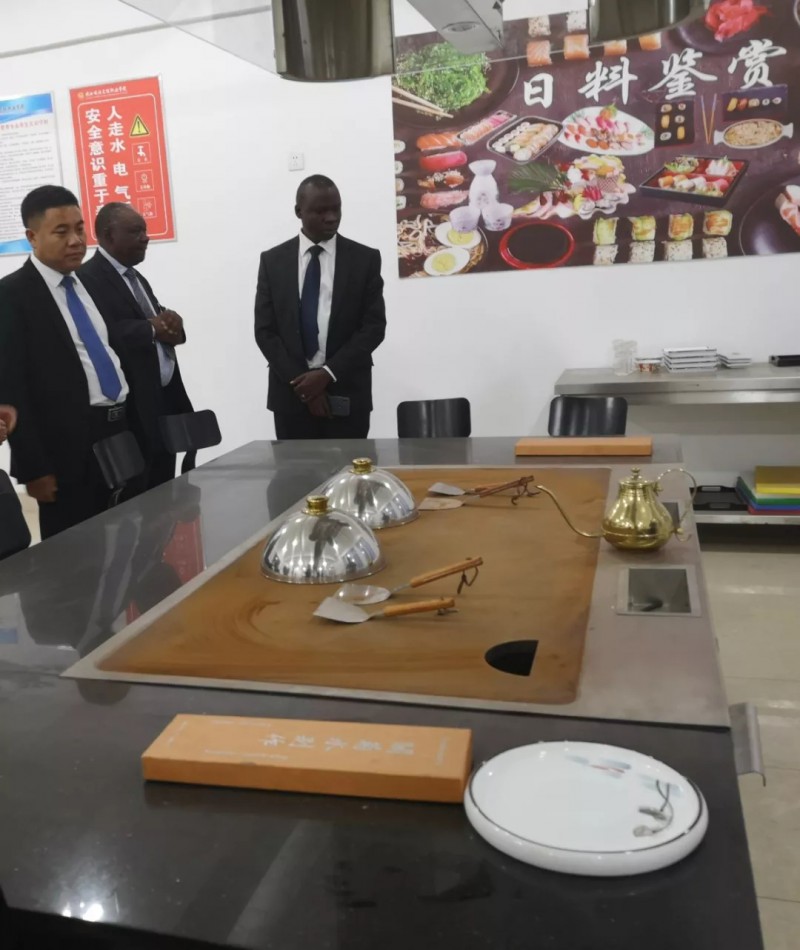 穆万萨一行先后参观了今年会的旅游酒店管理和烹饪专业实训室,并与学院领导进行了友好座谈。在座谈中,王新丽院长详细介绍了今年会的基本情况,并指出,中赞两国友谊绵长,两国建交55年来,各领域交流合作广泛,希望秘书长此次交流访问,能够促进今年会与赞方高等院校有更多交流与合作,不断发扬光大中餐文化,为推动两国教育文化交流做出应有的贡献。