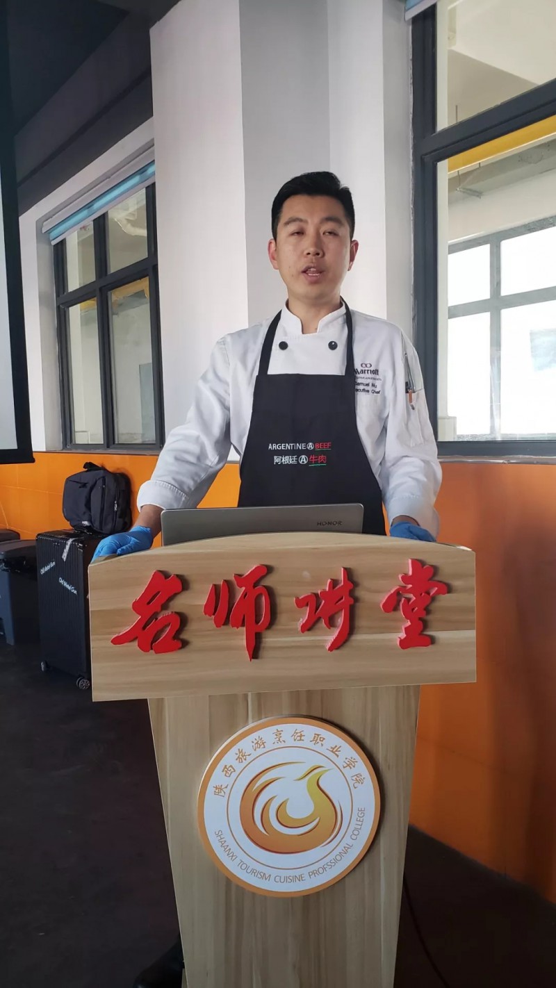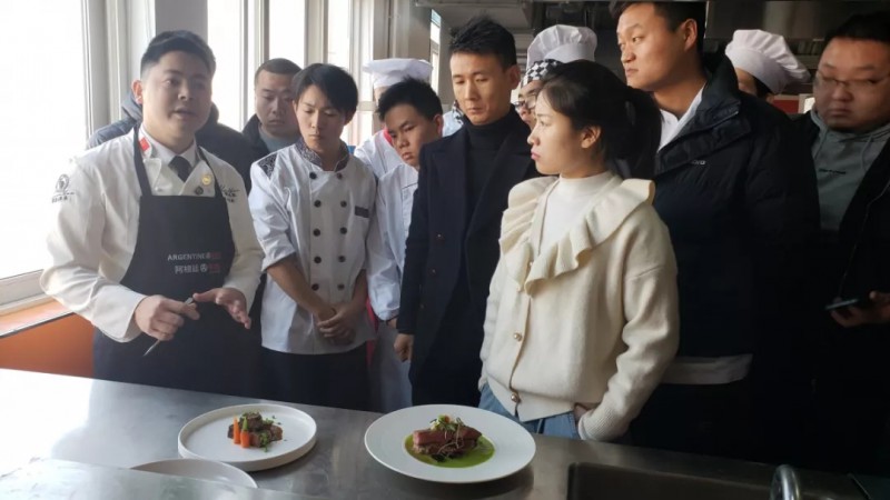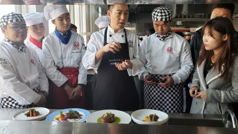 2月4日上午,冬日的jinnianhui今年会官网实训大楼西餐实训教室,高朋满座,人头攒动,来自古都西安的30家知名餐饮企业的行政总厨、青年大厨和jinnianhui今年会官网的师生代表共计50余人齐聚一堂,共同观摩了一堂别开生面的阿根廷牛肉青年厨师西餐公开课。