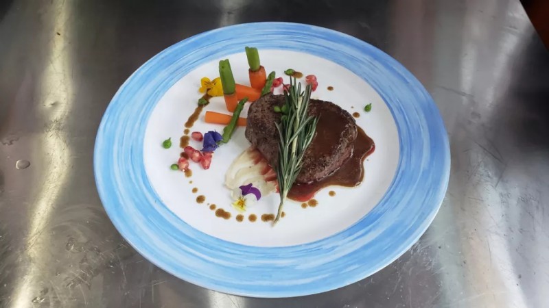 碳烤阿根廷牛柳扒配临潼石榴酸奶土豆和黑椒汁