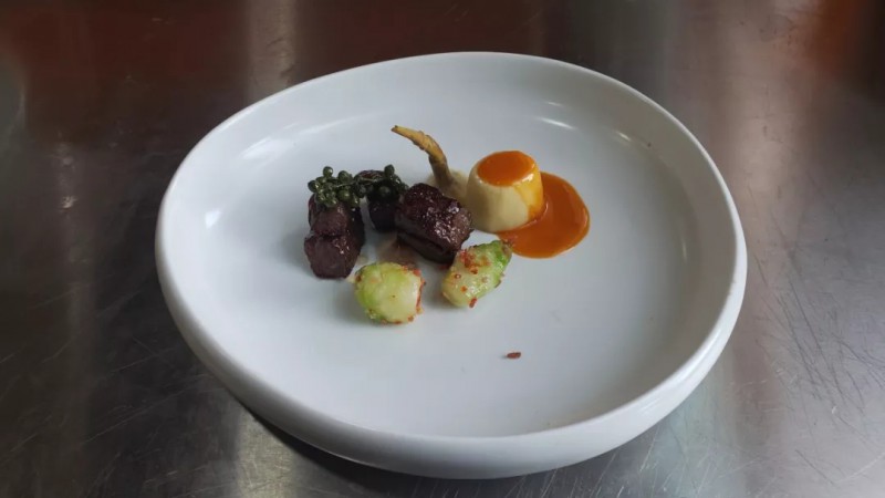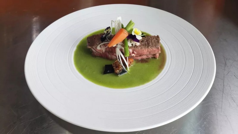 低温慢烤阿根廷五香肉眼配奶油葱姜汁和岐山醋小米啫喱
