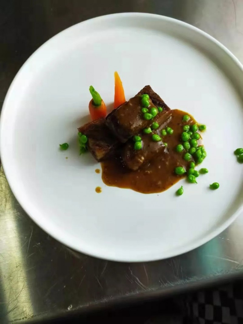 两位大厨说,中国人在烹制食材的过程中,选择和创造了不同的器物,在这些形形色色的器具中,发展出不同的烹饪技艺,调制着不同的美味,西式餐点经过中式器皿的装配,让西餐有了更好的中国水墨画的意境。
