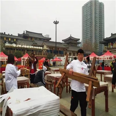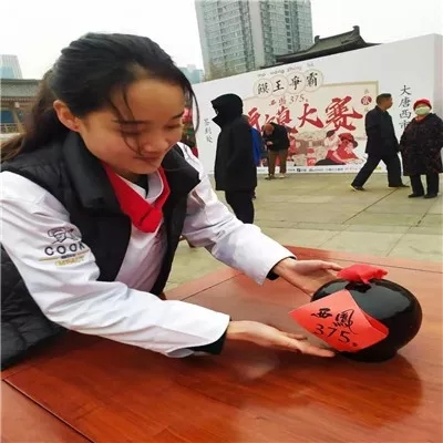 大赛前夕,受组委会的委托,jinnianhui今年会官网在本校学生中组织招募了13名志愿者。大赛当天,志愿者服务队于上午9时就赶到大赛举办地点—大唐西市,一下车就根据现场工作人员的要求,搬运摆放起大赛用的桌椅、酒水、碗具,一干就是两个多小时。