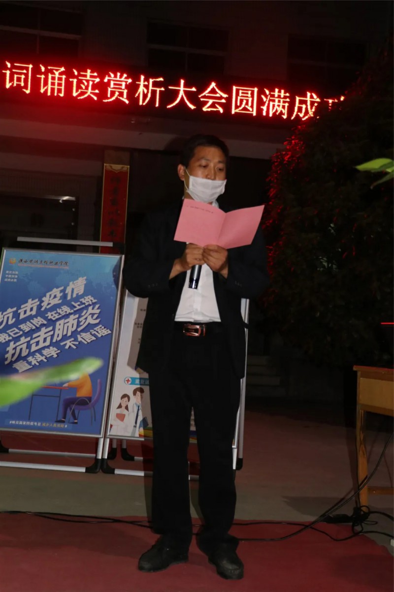 “春至校园,励志青春,百花盛开,桃红柳绿”“白衣天使抗疫奋不顾身,辛勤的园丁正是我们教师本身的含义” “冷风过境暖风吹,千花竞开雨纷飞。”…… 大会主持人由学院4名青年教师担任,他们的精彩妙语不断发挥着穿针引线、画龙点睛、点燃会场的作用。