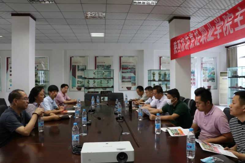 7月14日上午,西安旅游协会常务副会长秘书长丁晓阳、副会长耿博、 副秘书长刘锋、李泠锋、以及央视双创栏目策划张文博和刘尧等一行6人来访今年会,就日后双方单位合作事宜进行洽谈。院长王新丽、副院长杨涛、研究所所长齐和、院办主任张金平、教务处处长王鹏、招就办副主任李凯等学院有关领导陪同参观并交流洽谈。