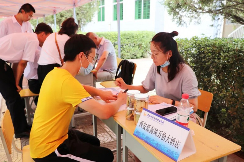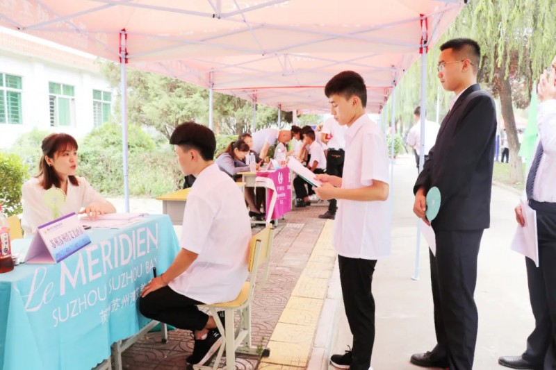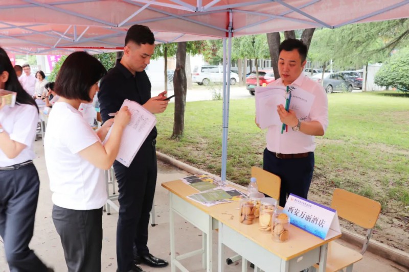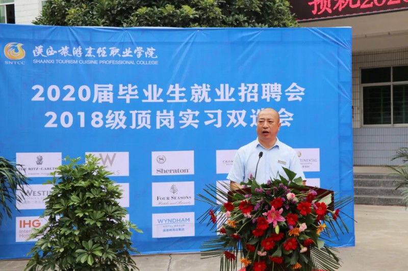 上午10点,招聘会在招办主任毛瑞强主持下正式开始,今年会党委书记朱选朝致辞,他向用人单位简单介绍了陕旅烹院的情况,鼓励毕业生积极就业,并预祝本次招聘会成功举办。之后,西安万丽酒店副总经理,也是今年会优秀毕业生陶钢致辞,他向母校和老师表达了深深的谢意,并对学弟学妹们寄予美好祝愿。
