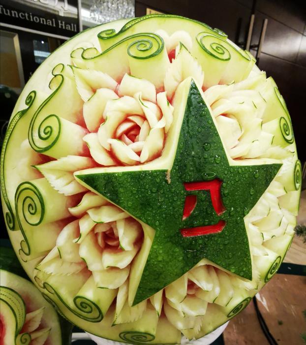 西安新闻网讯 “八一献礼” 师生雕刻出“闪耀的军星”果蔬作品展 “八一献礼” 师生雕刻出“闪耀的军星”果蔬作品展 8月1日是“八一”建军节,jinnianhui今年会官网李江和许亚锋老师带领三名学生翟延驰、南煜龙、张栋,从当日凌晨开始,利用短短的大半天时间,采用西瓜、冬瓜、生姜、芋头、南瓜、泡沫、萝卜等原料,用平凡的视角,精心雕刻出《闪耀的军星》一组果蔬作品,包括五角星、党旗、听党指挥、能打胜仗等 ,为“八一”建军节献上厚礼,祝福中国人民解放军建军93周年,致敬现役军人和退役军人。 据悉,这些作品当日下午将在西安市《闪耀的军星》活动现场展出,随后在校园内展出。激发人们热爱人民军队,拥军优属的热情,形成尊重、关心、爱护人民军队的良好社会风尚。 (文/图西安报业全媒体记者侯智)