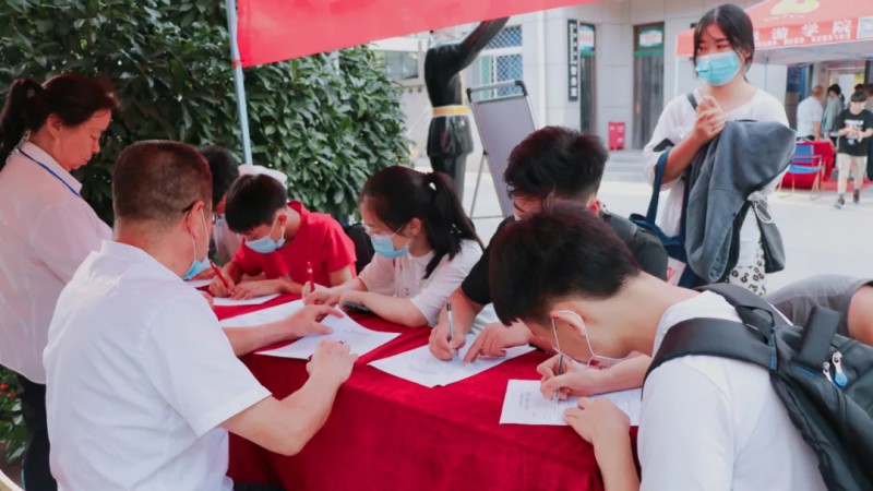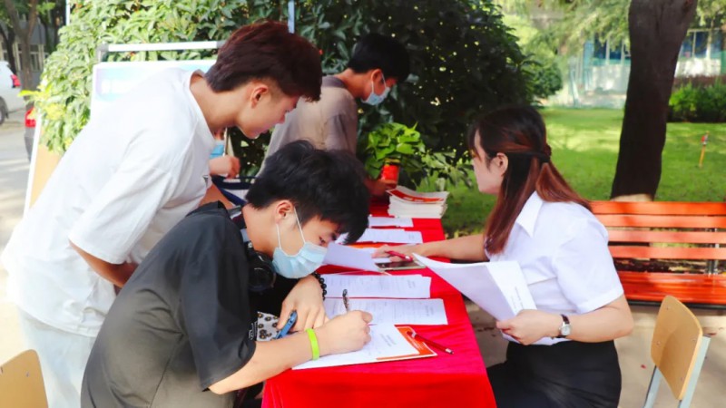一大早,校园广播中就响起了欢快的音乐,2020级新生陆续报到,沉寂已久的校园也变得热闹起来。一下车,同学们在老师的指引下有序排队,依次出示健康“绿码”、检测体温、消毒、登记、签订承诺书、领取军训物品。一系列手续办理完成后,还有专人引导带入宿舍。