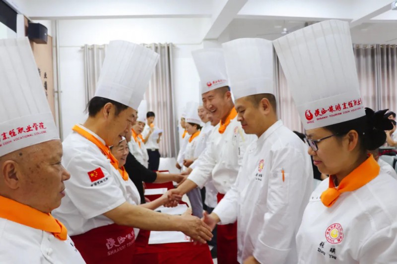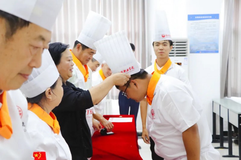工匠精神,薪火相传。为帮助青年教师树立职业理想,坚定职业信念,烹饪文化艺术学院今天隆重举行2020年烹饪专业新教师入职授帽仪式。会议由副院长杨涛主持,参会人员有院长王新丽、副院长杨文利、工会主席张金平、招生就业办主任毛瑞强、中国注册烹饪大师赵军山、薛富强、赵俊、崔永团、赵彦奇、马召萍以及全体青年烹饪专业教师。