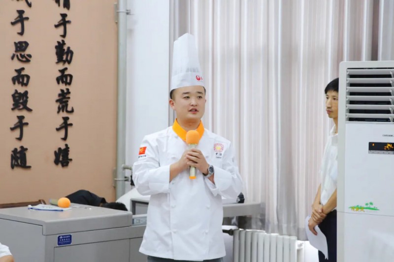 仪式上,烹饪大师为青年教师戴上标志走进烹饪职业教育门槛的厨师帽,并为各青年教师寄予美好期望,希望他们能感受到烹饪职业教育神圣的使命感,坚定自己的职业理想信念,在烹饪职业教育的道路上走的更远,更稳。中青年教师宋峰和罗浩老师分别发言,他们表示,作为中青年教师,需要不断提升自己的责任意识,在日后的工作中一定会做到保持敬业精神,坚守自己,学高为师,身正为范。
