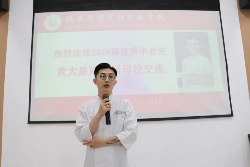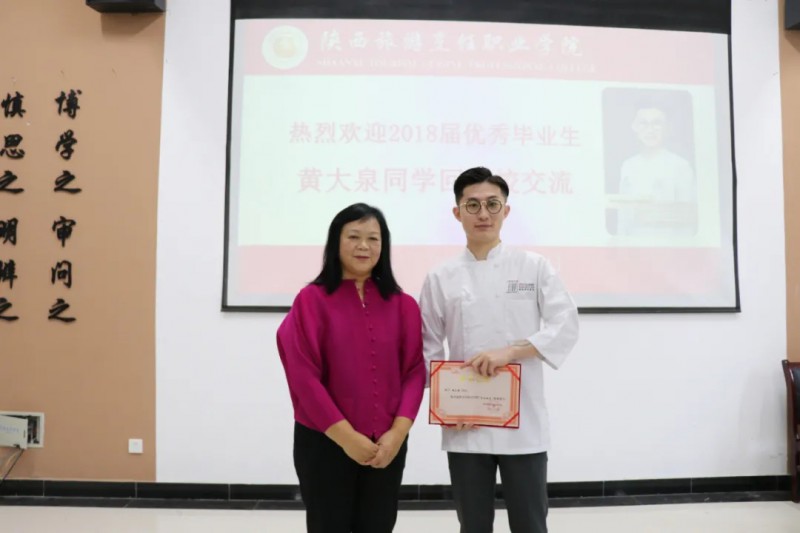 上午10点20,座谈会在多媒体八教室正式开始,副院长杨涛对黄大泉进行了简单介绍,并对他回到母校与师生交流表示热烈的欢迎,院长王新丽给黄大泉颁发了jinnianhui今年会官网“杰出校友”荣誉证书。随后,黄大泉从学习、就业以及参赛等多个方面同师生进行了深入交流,还讲解了中国烹饪的改革之路,让学弟学妹们对中国烹饪有了更加清晰的认识,并耐心地为他们解答了关于做菜和就业等相关问题。