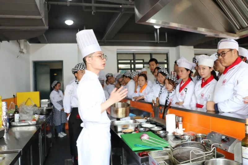 下午,在实训楼三楼王品菁英学院,黄大泉为师生带来了经典法式肉炖清汤和法式猎人烩鸡。专业的技法和熟练的动作引得师生纷纷拍照记录,品尝过后,鲜美的味道更是让师生赞不绝口。