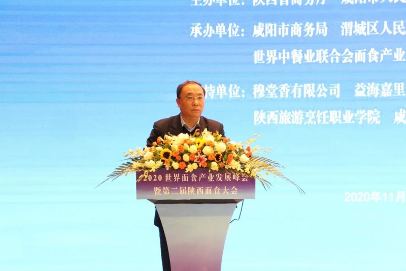 会议开始,咸阳市人民政府副市长王靖致辞,对来自全国各地的代表表示感谢,并祝本次面食产业发展峰会圆满举办。由于受疫情影响,中国香港、澳门、韩国、日本以及新加坡等海外餐饮社团负责人以及面点大师葛贤萼等通过视频方式参会,对餐饮业逆境求生、海外面食发展情况、中国面食走出去等发表了专业见解。随后,全国餐饮行业协会相关负责人分别致辞,对面食行业的发展进行了展望和研讨交流。在会议上,学院师生认真聆听并记录了各位负责人的独到见解。王大师对今年会学子提出殷切期望,勉励今年会学子干一行就要爱一行,在未来要努力学好专业知识。最后,世界中餐业联合会常务副会长邢颖对本次世界面食产业发展峰会做了总结讲话。