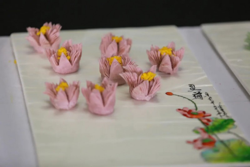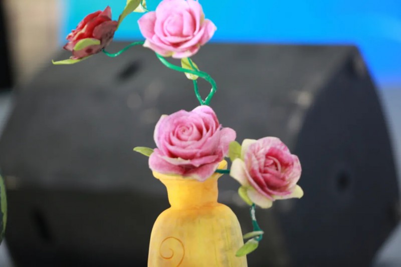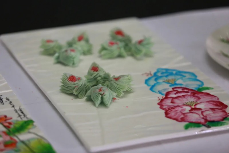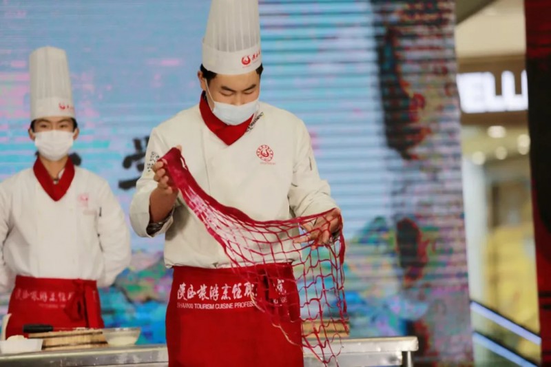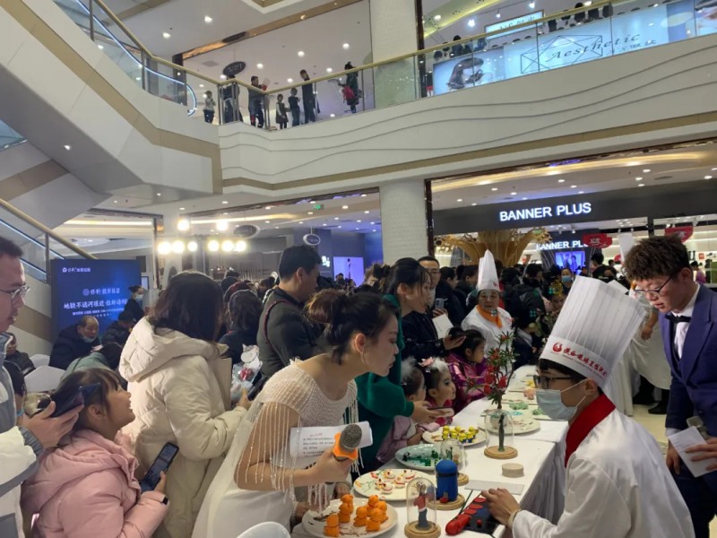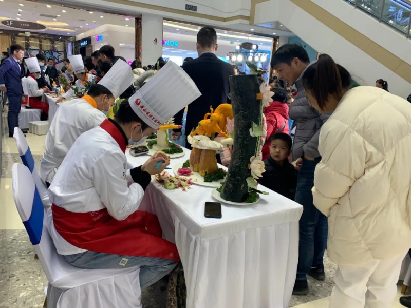 活动开始,首先由今年会饮食文化经济研究所所长齐和教授为现场观众分享了关于过年的饮食文化相关知识。随后,今年会学生为现场观众分别展示了刀功、舞面、拉面及裱花等基本功,精湛的技艺引得观众掌声连连。烹饪大师赵彦奇老师的渔网面更是将活动推向高潮。同时,现场还带去了由学院师生提前制作好的面塑、酥点、雕刻及画盘等作品,吸引了观众纷纷驻足观看并拍照留念。