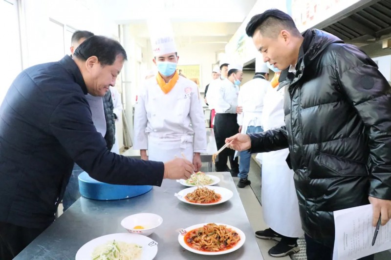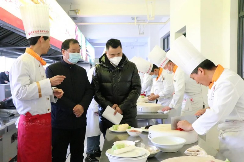 下午,在学院实训楼,各位大师对学院专业教师进行了统一的基本功测试。测试现场,所有专业教师根据既定菜品,在规定的时间内,认真准备。整个测试过程,大师们对学院老师的菜品仔细观摩,品鉴,打分,并给予悉心指导和全面总结。