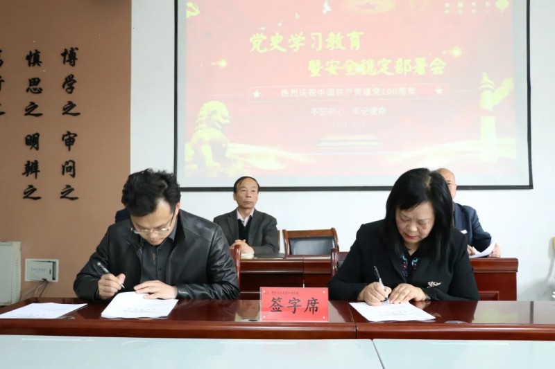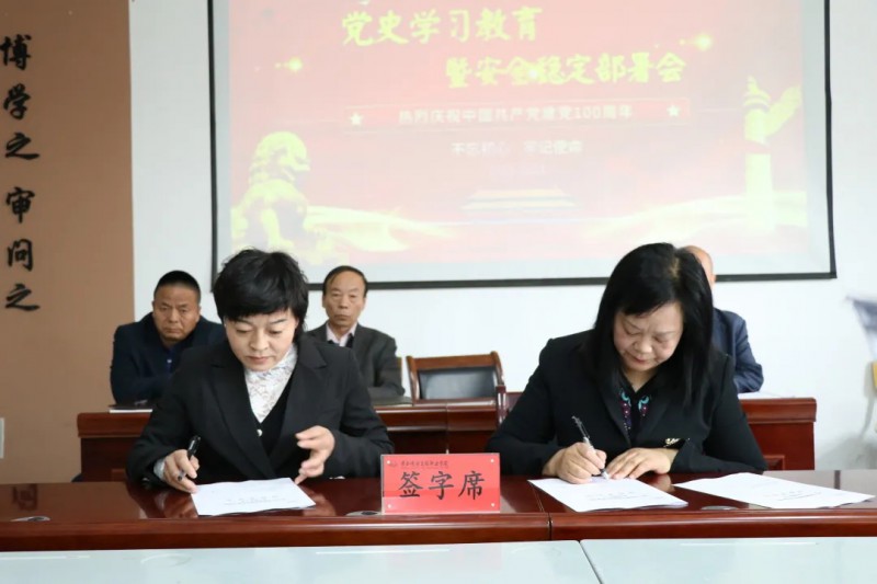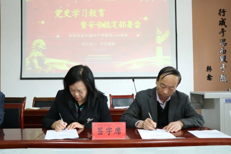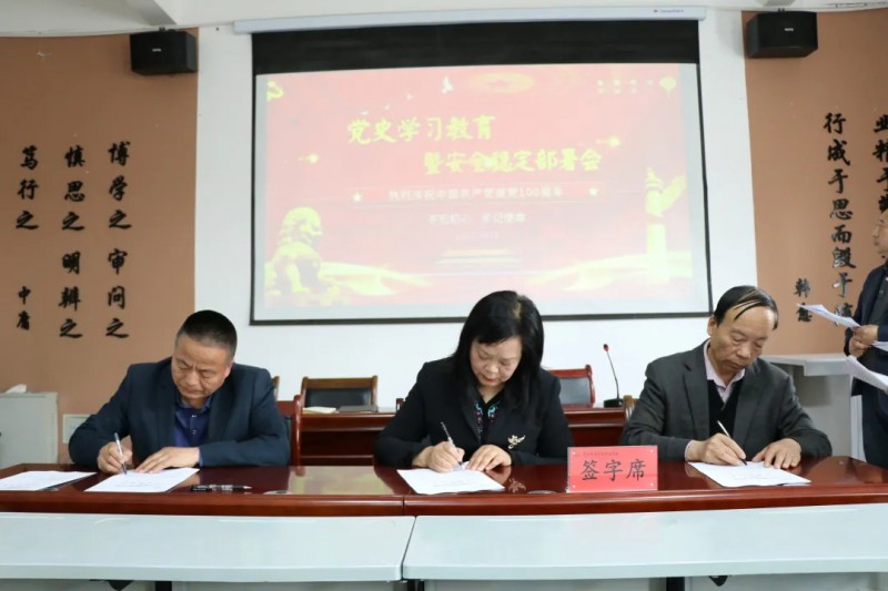 随后,王院长全面分析研判了当前学院安全工作形势,针对学院创建“平安校园”工作做了详细部署和安排,强调学院仍需进一步提高安全防范意识,加强安全管理,夯实安全责任,并代表学院与各职能部门负责人签署了校园安全稳定责任书。