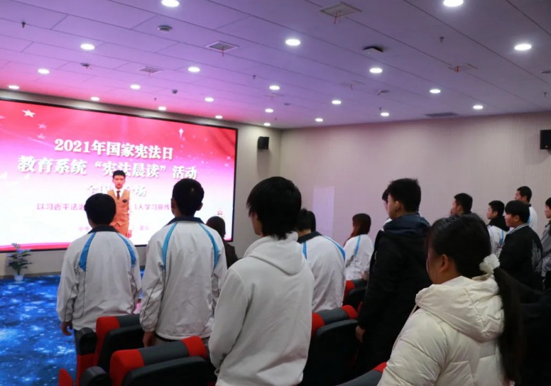 今年12月4日是第五个国家宪法日,也是第一个“宪法宣传周”。今日上午,今年会组织学生通过普法网观看直播、同步参与“宪法晨读”活动,旨在通过宪法晨读,让学生学习宪法的基本原则和基本知识,增强宪法意识,弘扬宪法精神,懂得爱国守法。
