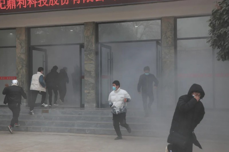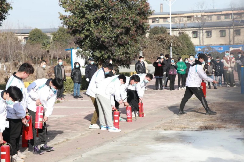 随后,2021级每班派10名同学,听到口令后,取灭火器奔赴着火点,进行灭火,操练完毕灭火器放回原位。现场进场有序、动作逼真、态度严肃。