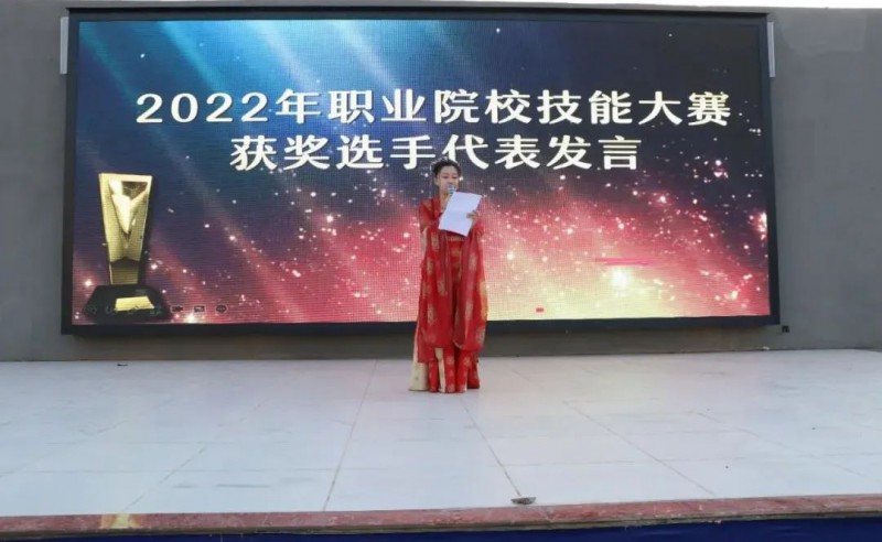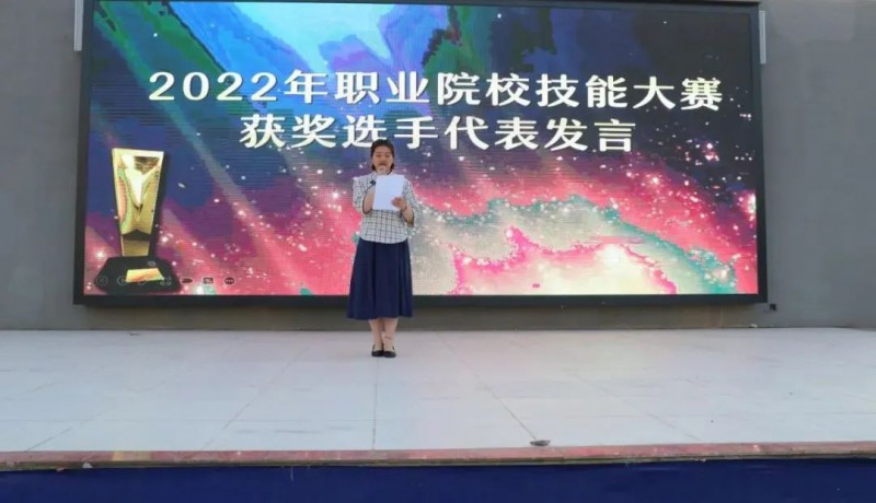 随后,在技能大赛中获奖的优秀学生—酒旅201的李靖怡和西餐212班的胡晓同学分别上台发表自己的获奖感言和心路历程。