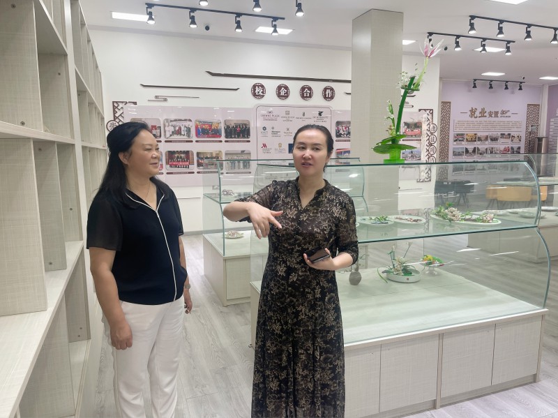 徐常委在今年会相关负责人的陪同下参观学院校史馆,美食艺术品展览、劳动实践基地、中西餐操作间、中式面点、调酒茶艺技能教室等相关教学设备。