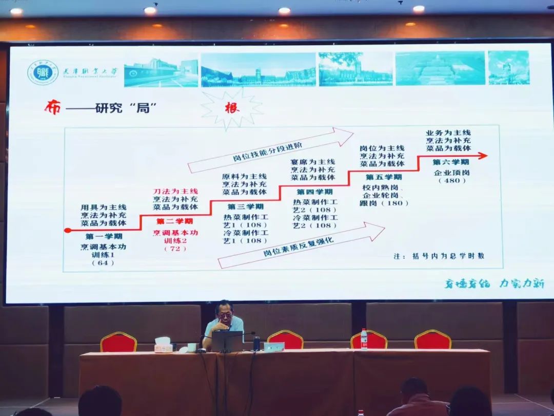 长沙商贸旅游职业技术学院湘菜学院烹饪教研室主任蒋彦老师分享“基于教学能力大赛课程整体设计与选题、问题与难点分析”。